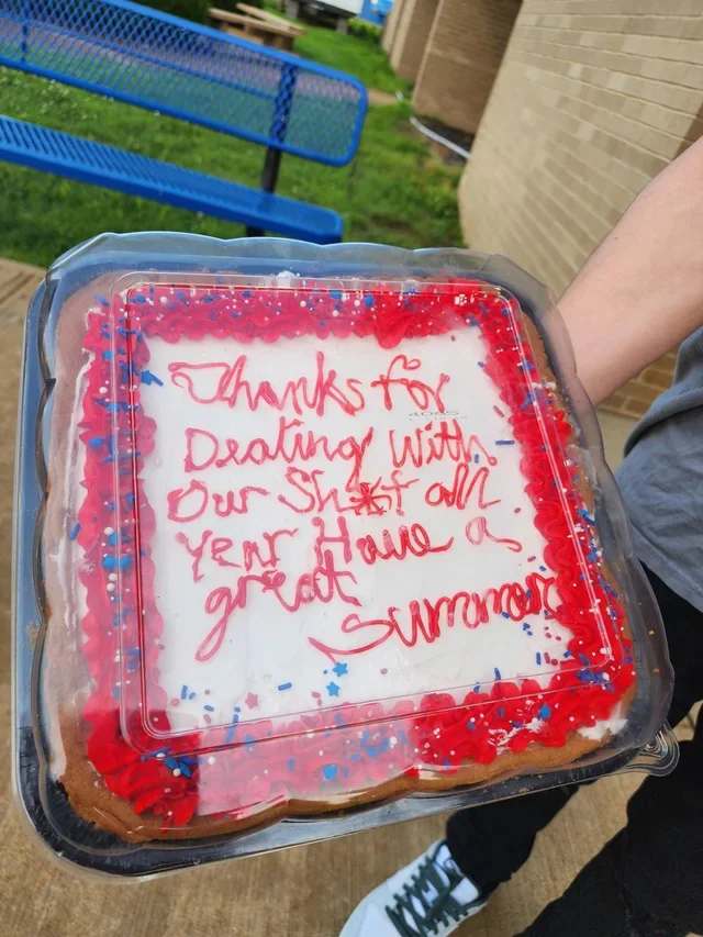 There’s a new trend in middle and high school classrooms, and no, it’s not the dreaded six-seven or the latest TikTok dance. Students are now giving their teachers apology cakes. Yes, cakes. Remember a time when a student would give you a handwritten “I’m sorry” note or awkward hallway apology? Today’s kids are slapping frosting on a slab of sugar with the hopes that you might bring up their grade or excuse their many absences. Because nothing says “I totally respect you and your time” like a lopsided Funfetti cake with “SORRY 4 TALKING TOO MUCH” scrawled in icing that looks like it’s been applied during an earthquake.