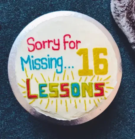 Well, I made you this apology cake during one of your classes. Can you pass me, miss?
