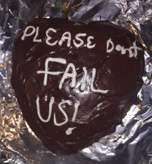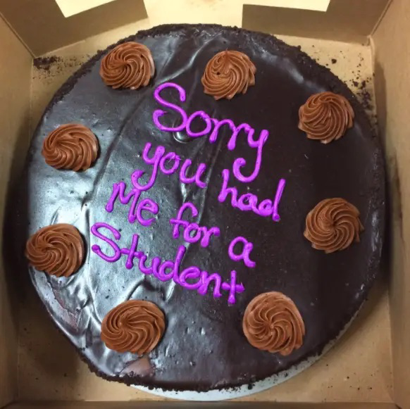 Not only did this student fail all of your tests, their icing skills are quite awful as well. Would you eat this cake? 9/10 teachers say no way!