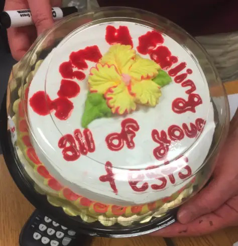 While the teacher might appreciate the sentiment of this cake, having to look at their students’ faces at home on the last day of school might negate the happiness the cake may bring.