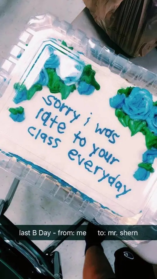 These sugary peace offerings don’t always hit the mark, mostly because they are homemade, and veteran teachers know never to ingest anything from students that is homemade. Teachers are left holding the cakes for everything from “being late” to “failing your class” because, apparently, sugar and adolescent logic read something like, “I disrupted your lesson, but here’s a three-layer chocolate cake and I may or may not have licked the spoon while making it” Still, the trendy buttercream is now an acceptable replacement for accountability. It’s an odd blend of equal parts hilarious and tragic, and if the confection is from a store and fully sealed, it just might work. If we’re truthful with ourselves, we know they aren’t really sorry; they just want a picture or video clip for TikTok.