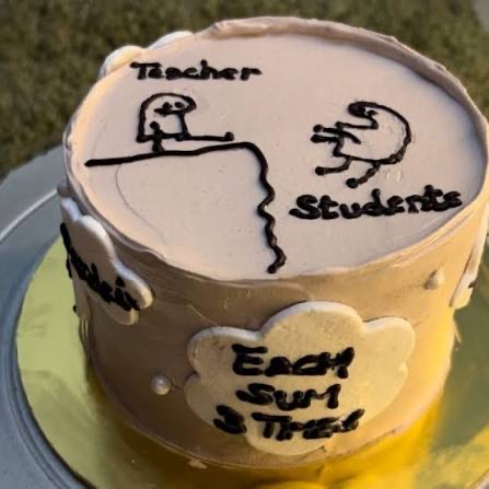 This slightly inappropriate cake acknowledges the plethora of crap the students gave the teacher all year, which can be cathartic for the teacher. Self-reflection is important, but I’m not eating that oddly frosted thing.