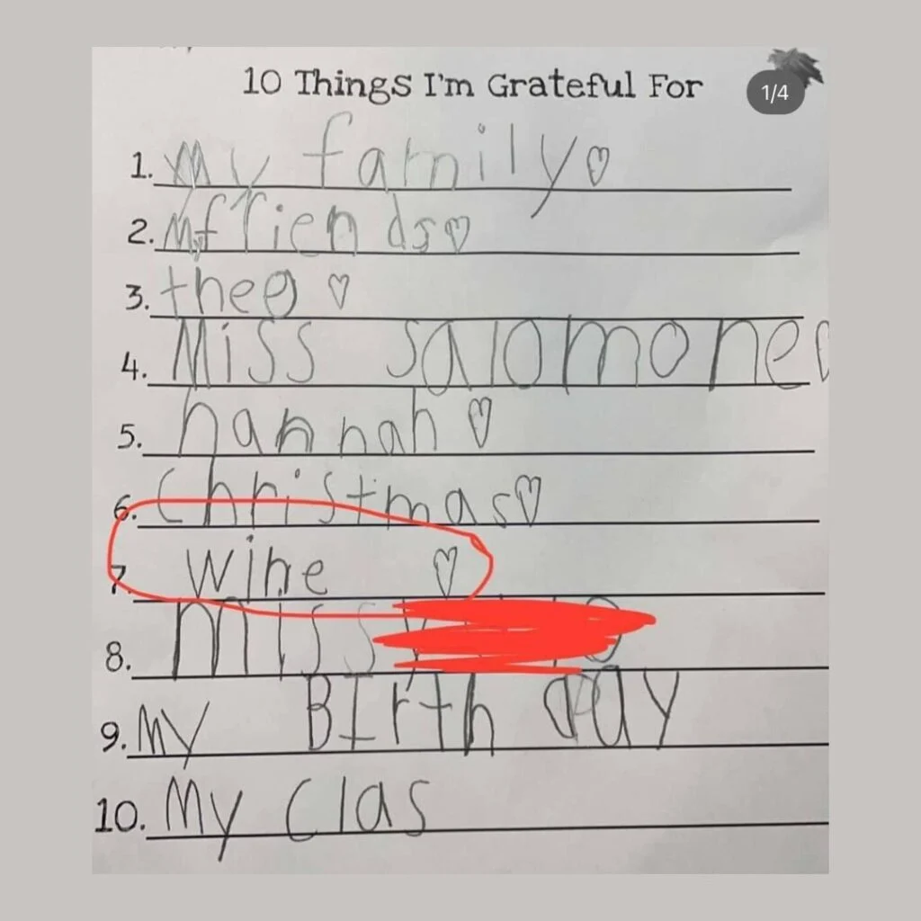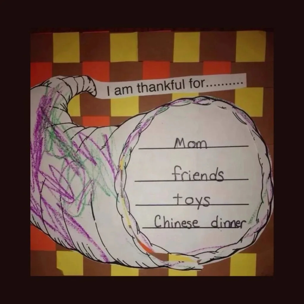 Between the children who are deeply thankful for specific food items such as chicken nuggets, those who take a practical approach and praise their new dishwasher, and the brave souls who admit some truly odd things, such as playing with squirrels, we’ve collected a gallery of unfiltered, unintentionally hilarious student honesty. Please enjoy these gems while remembering: we don’t intentionally write the comedy… the children do!