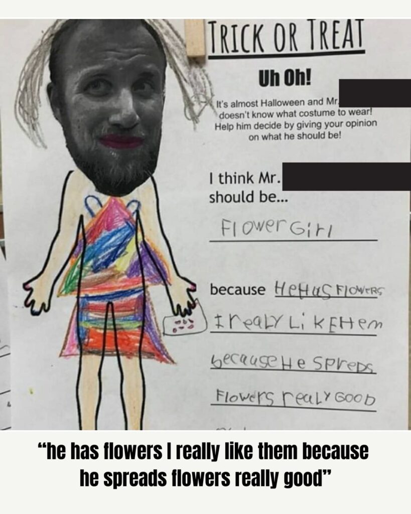 This activity is only for the most confident teacher who doesn’t mind kids pointing out their perceived flaws, like acne problems and extra baby weight. Ask kids with too much confidence and zero sense of boundaries for ideas, and you won’t believe what you’ll get! Suddenly, you will realize that your students aren’t giving costume ideas, they’re actually staging a roast. But sure, let’s hear them out. What could possibly go wrong?