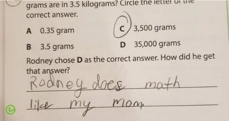 From kids who confuse Newton’s laws with “that guy who invented the fig” to naming shapes “Bob and “Linda,” these unintentionally hilarious answers prove that students will always find a way to surprise (and entertain) us. However, sometimes they come up with answers that are technically correct, although they are far from the expected answer. If you’re “hip,” you just might let it slide.