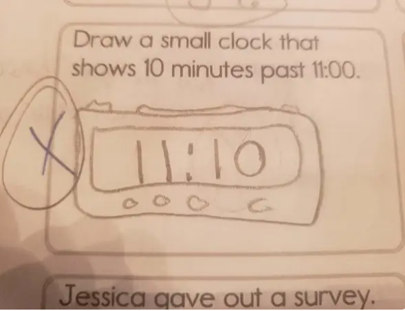While this probably wasn’t the response the teacher was looking for, it still provides an answer to the question. Besides, who uses those musty old clocks anymore, anyway?
