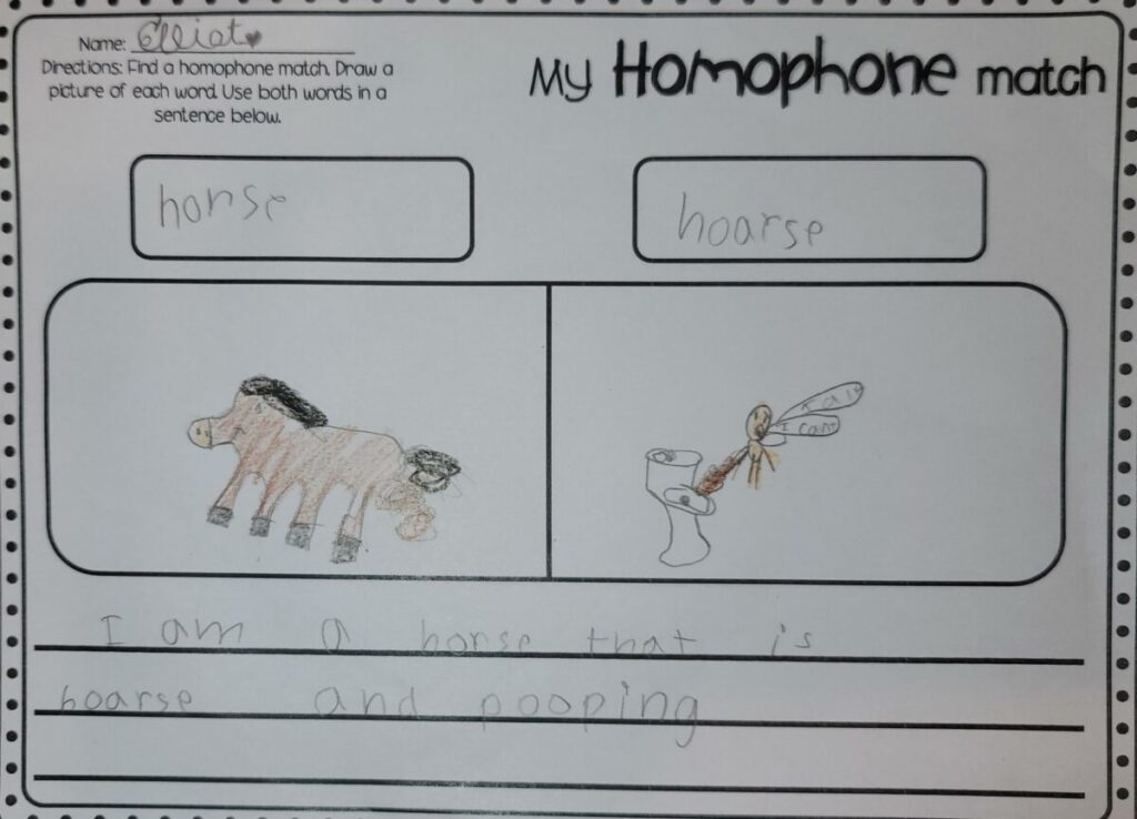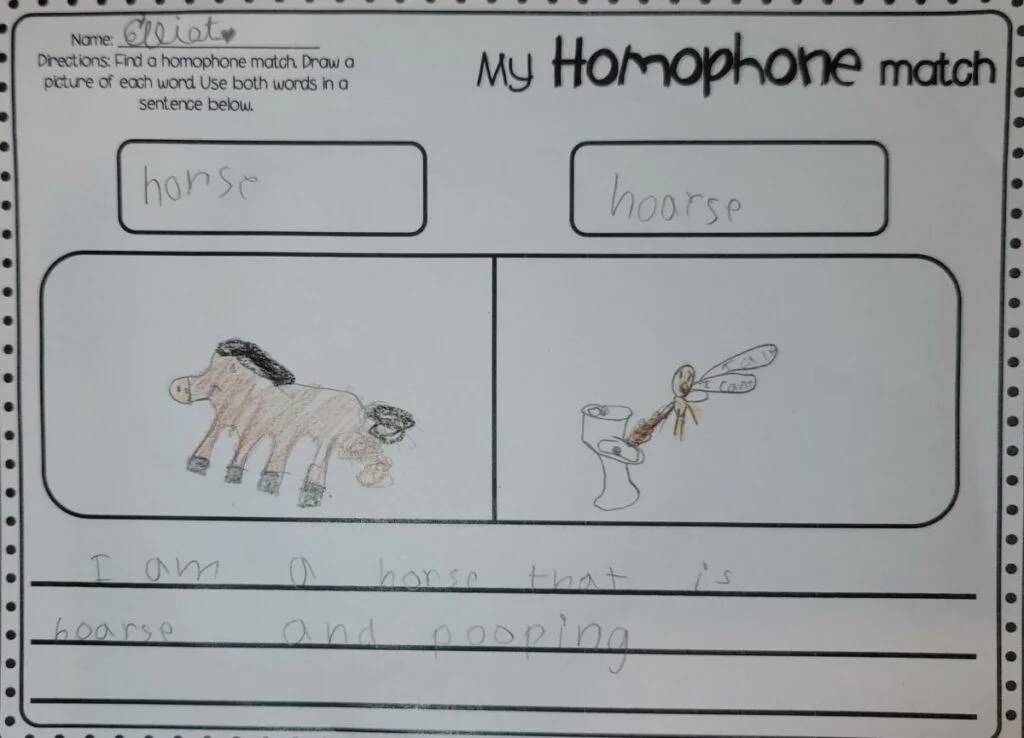 Well, again, technically, Elliot did follow the directions, but he added some extra details about the horse’s bathroom habits because why not?