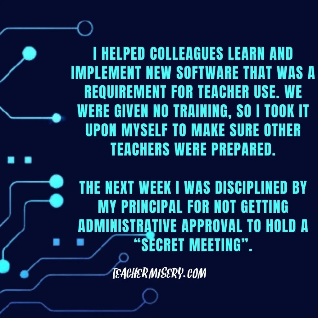 On this page, you’ll find true tales of miserable moments submitted anonymously by teachers within the industry. If you’d like to join in on the commiseration, submit your own secret to share!